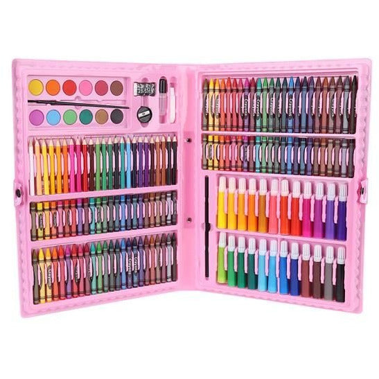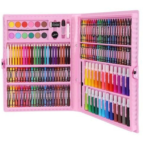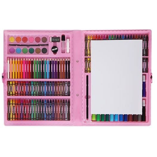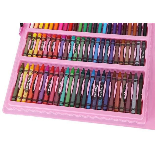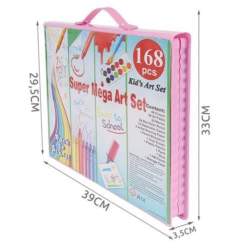 Met een enorme selectie van 24 kleurpotloden, 24 stiften, 48 oliepastels, 48 kaarspastels, 12 aquarelverf, puntenslijper, lijm, corrector, gum, A4-vellen kunnen we gemakkelijk de meest geavanceerde, creatieve en originele werken maken.