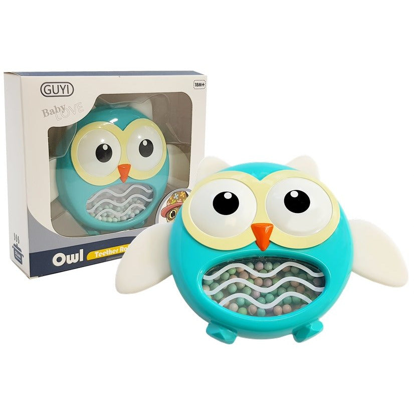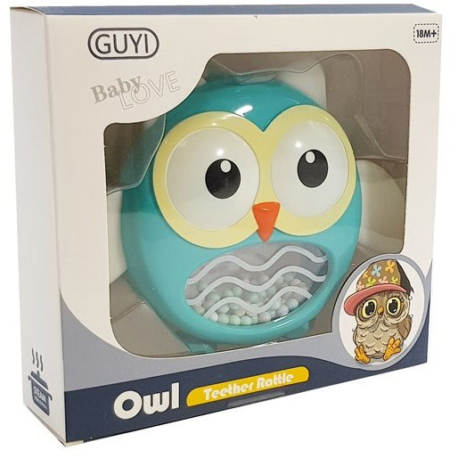 2 in 1 uil rammelaar en bijtring - Baby rammelaar - Educatief babyspeelgoed - Blauw