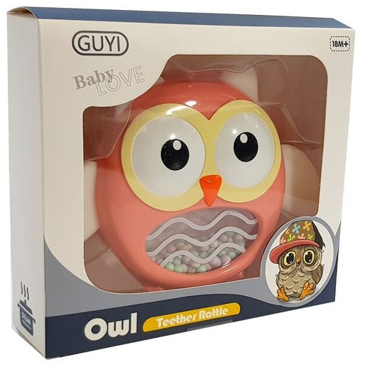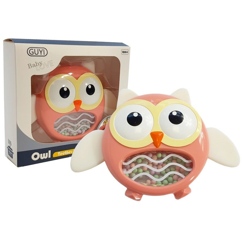 2 in 1 uil rammelaar en bijtring - Baby rammelaar - Educatief babyspeelgoed - Roze