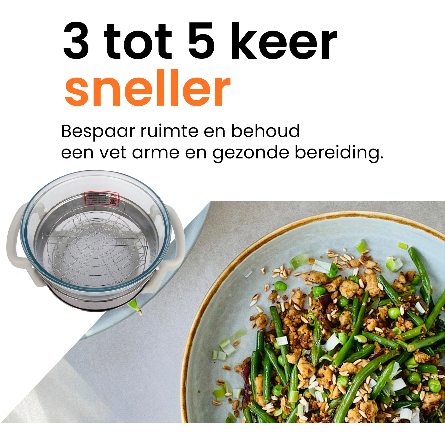 - Behoudt vitaminen en voedingsstoffen en kook zonder vet en olie.