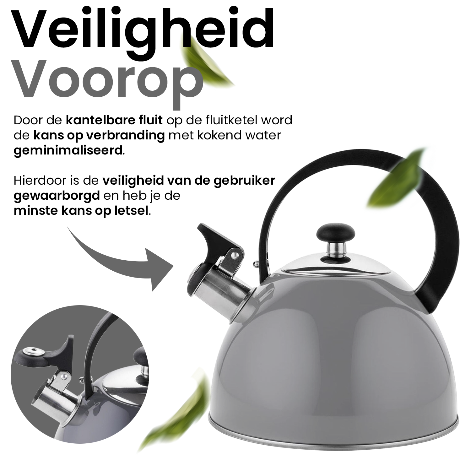 2de kansje Florina Brillo fluitketel RVS donkergrijs 2.5 Liter - ook geschikt voor inductie