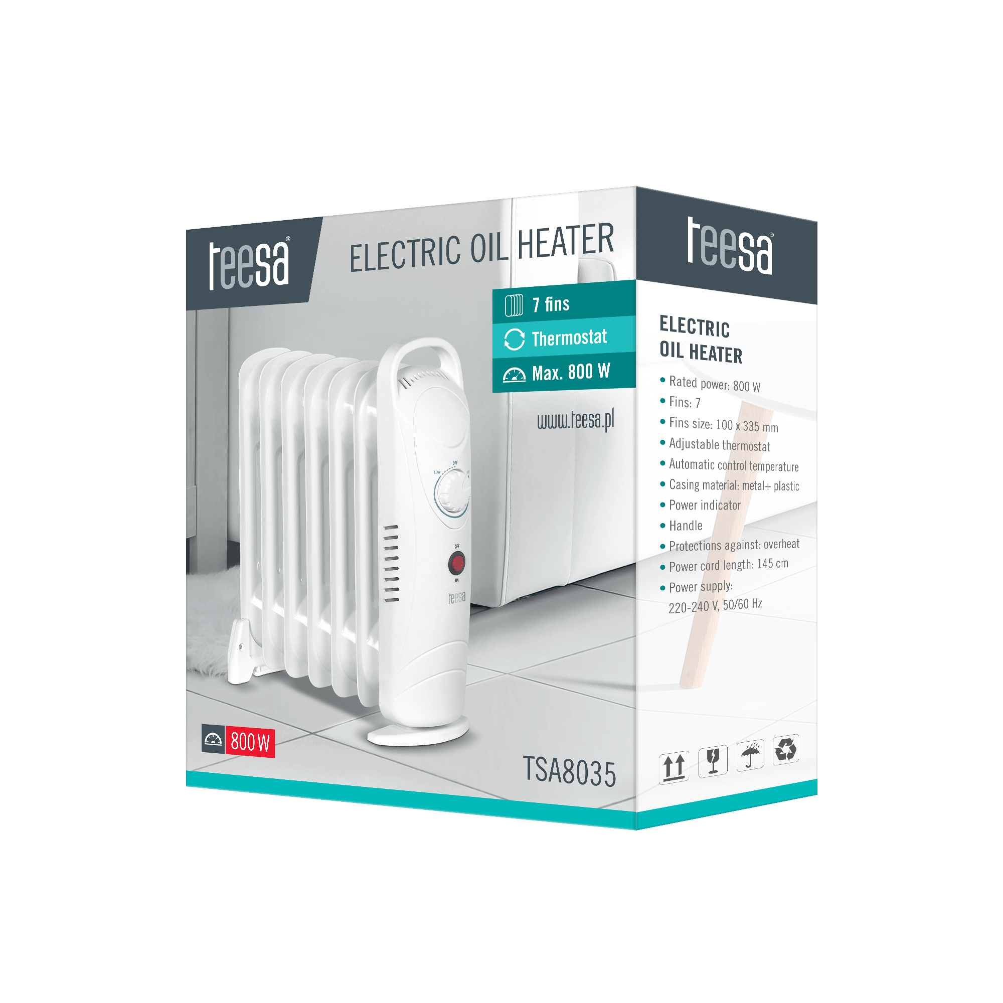 2de kansje Teesa TSA8035 Oliekachel met 7 ribben 800 Watt geschikt voor 7-8 m2