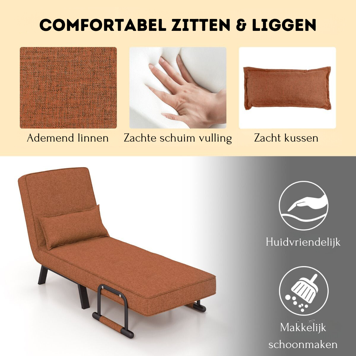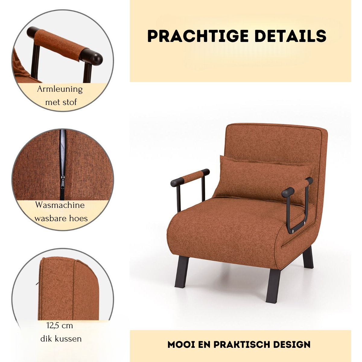 De slaapstoel heeft een veelzijdig design dat past bij verschillende kamerstijlen, waardoor hij ideaal is voor gebruik op kantoor, in de woonkamer, slaapkamer of logeerkamer. Je zult zeker complimenten krijgen van je gasten.