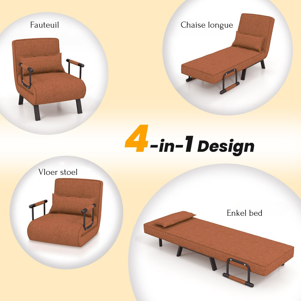 - Multifunctioneel 4-in-1 ontwerp: bankstoel, ligstoel, eenpersoonsbed