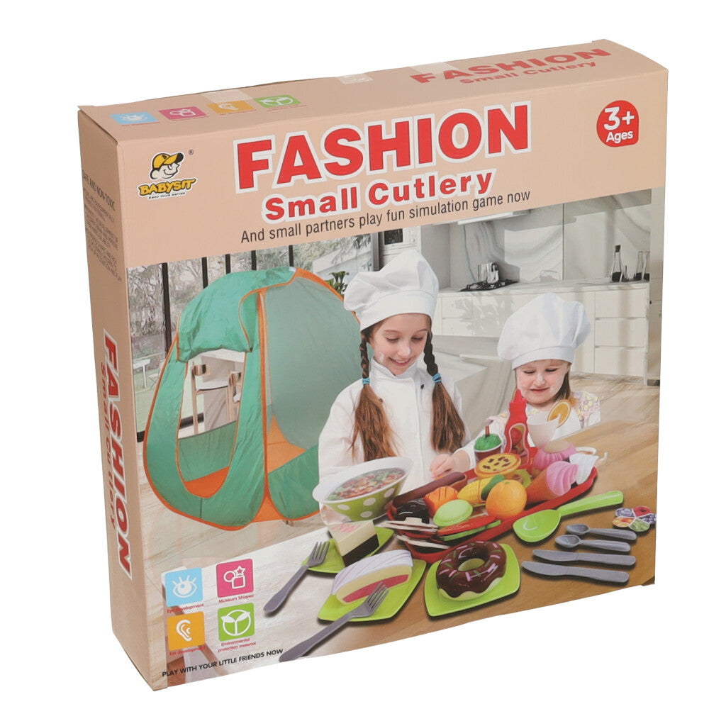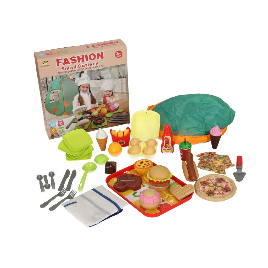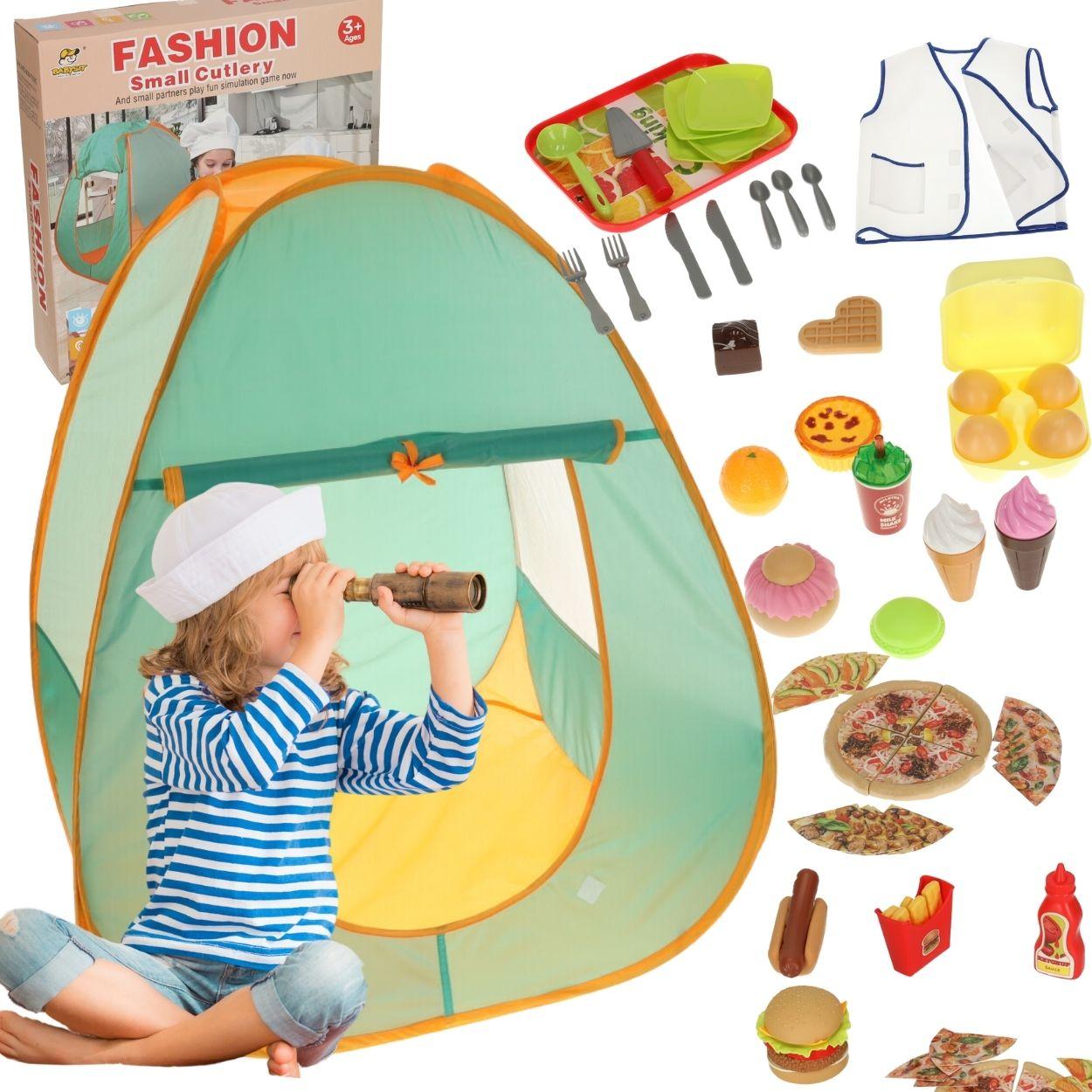 De set bevat maar liefst 62 items. Onder hen is niet alleen een kindertent, maar ook verschillende handige items, zoals een pot, bestek, of geschikte voorzieningen, waarmee je een interessant en smakelijk diner kunt organiseren.