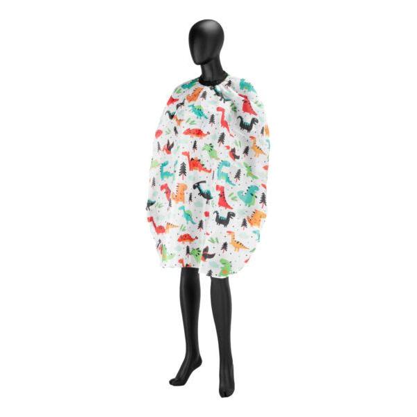 Dinomantel: Met kleurrijke dinosaurussen en een perfecte pasvorm zitten kinderen comfortabel in de kappersstoel.
