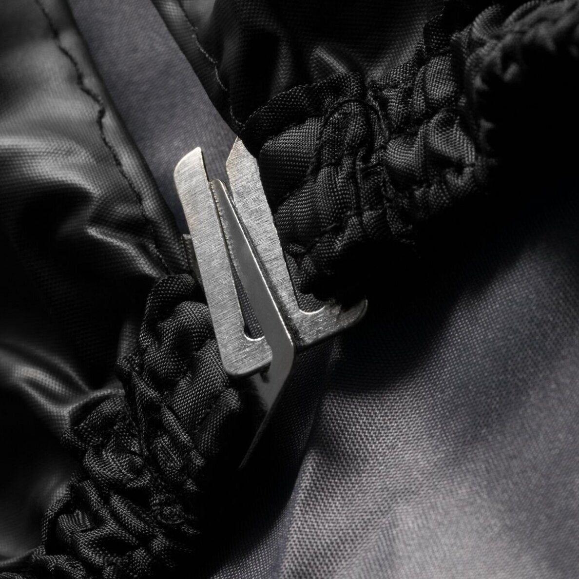 De sluiting van deze kappersmantel is duurzaam en verstelbaar met metalen pinnen, zodat je de cape makkelijk kunt aanpassen aan jouw lichaamsvorm.