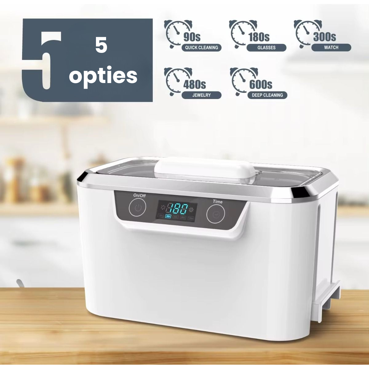 - Ultrasoon vermogen van 60W voor een grondige reiniging.