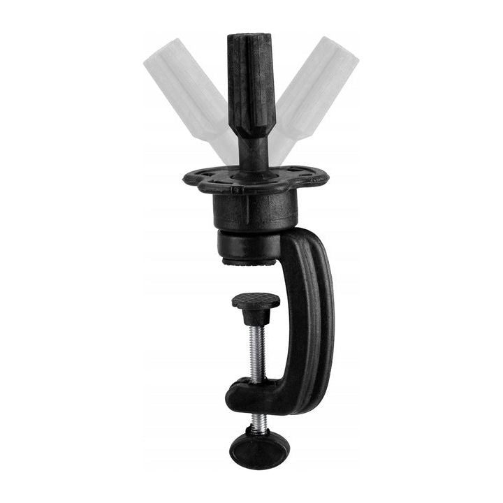Met de stevige handgreep die lijkt op een bankschroef, kunt u het statief stevig aan het tafelblad bevestigen voor veilig en comfortabel werken.