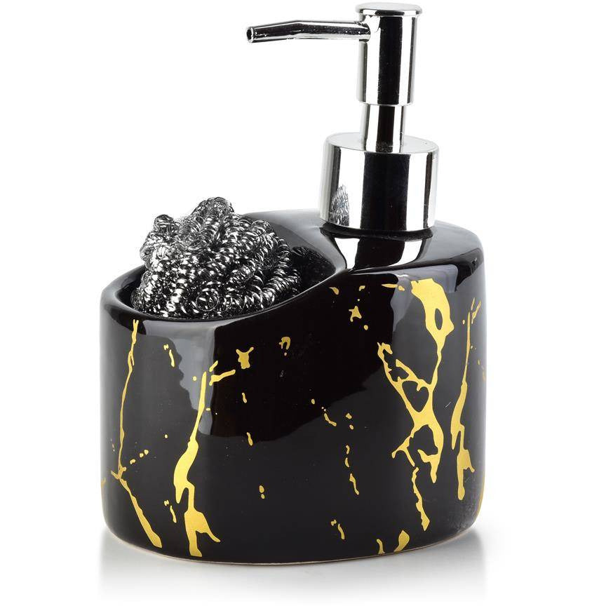 Affekdesign Cristie zeepdispenser / zeeppompje keramiek marmer look 9 x 11 x 15 cm zwart / goud