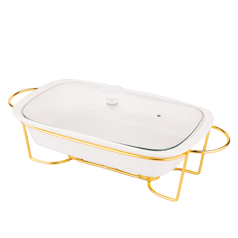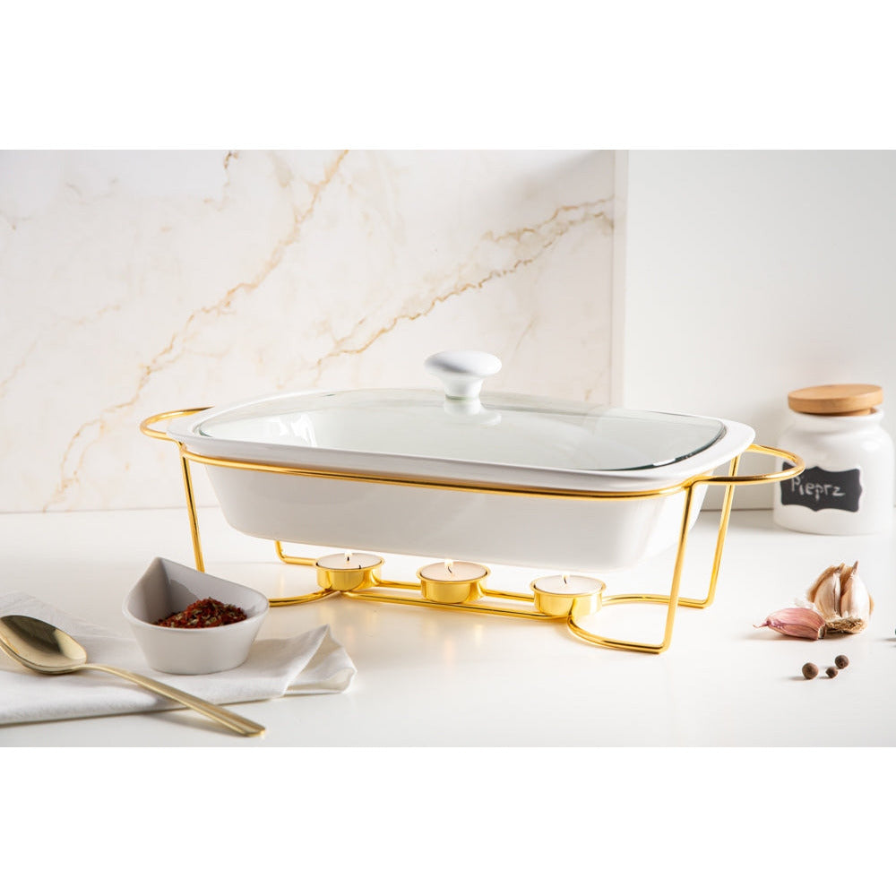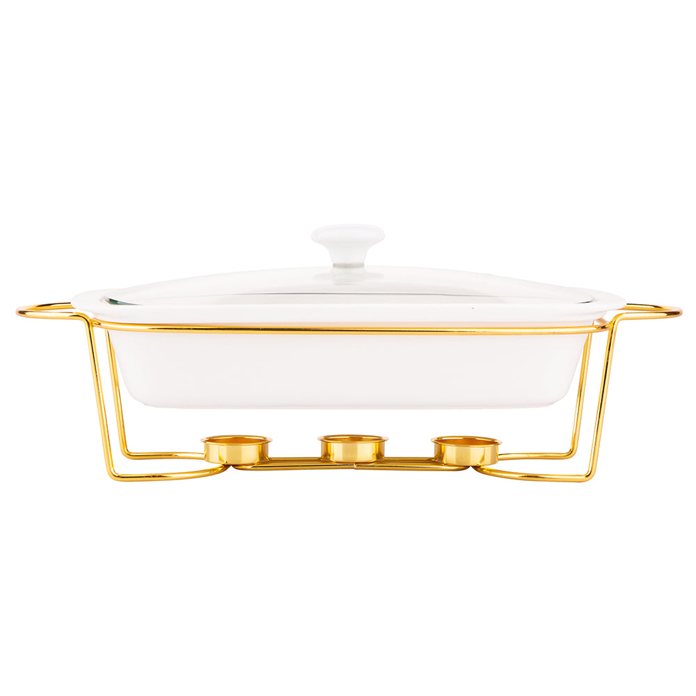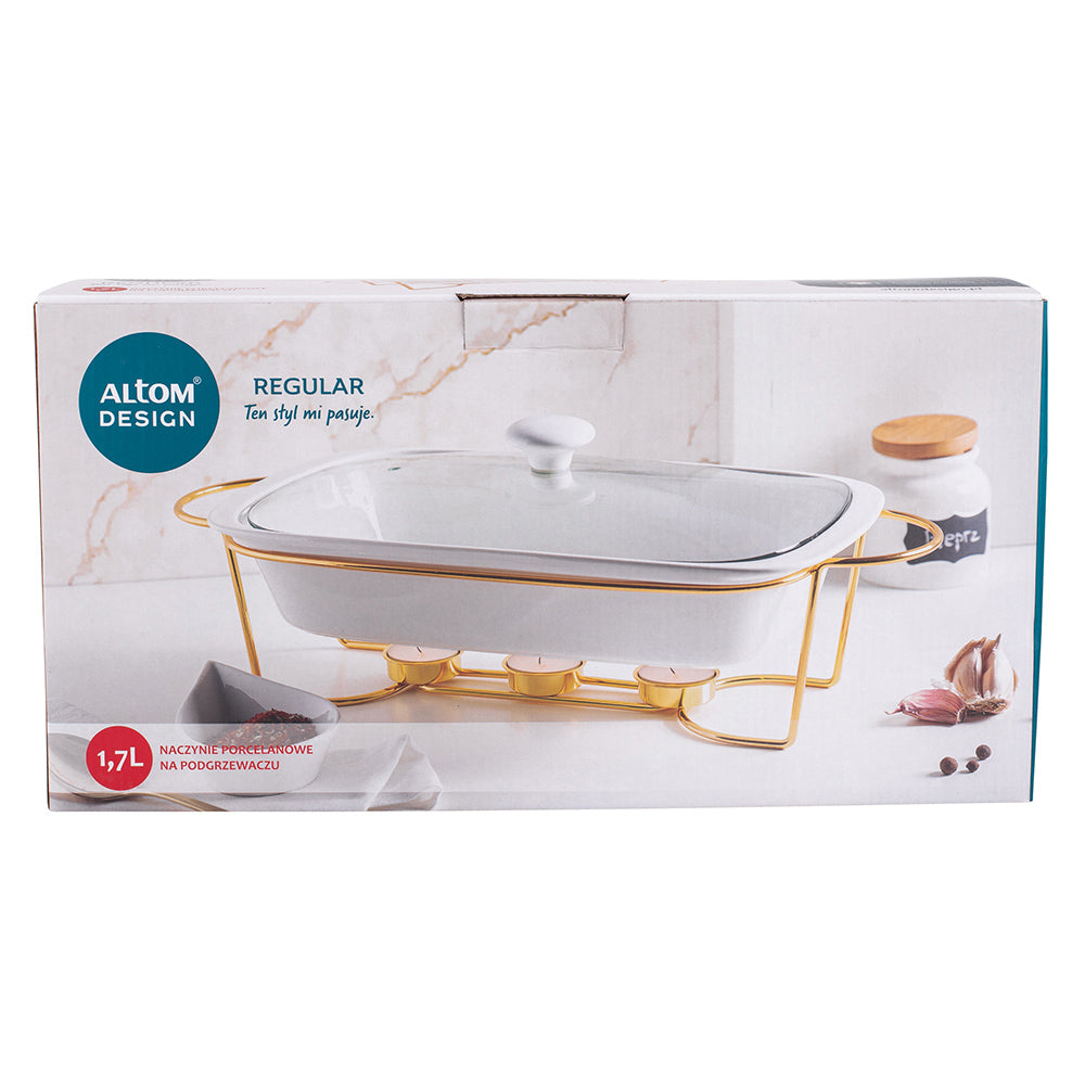 Altom chafing dish en warmhoudbak van porselein rechthoek 1.7L goud / wit