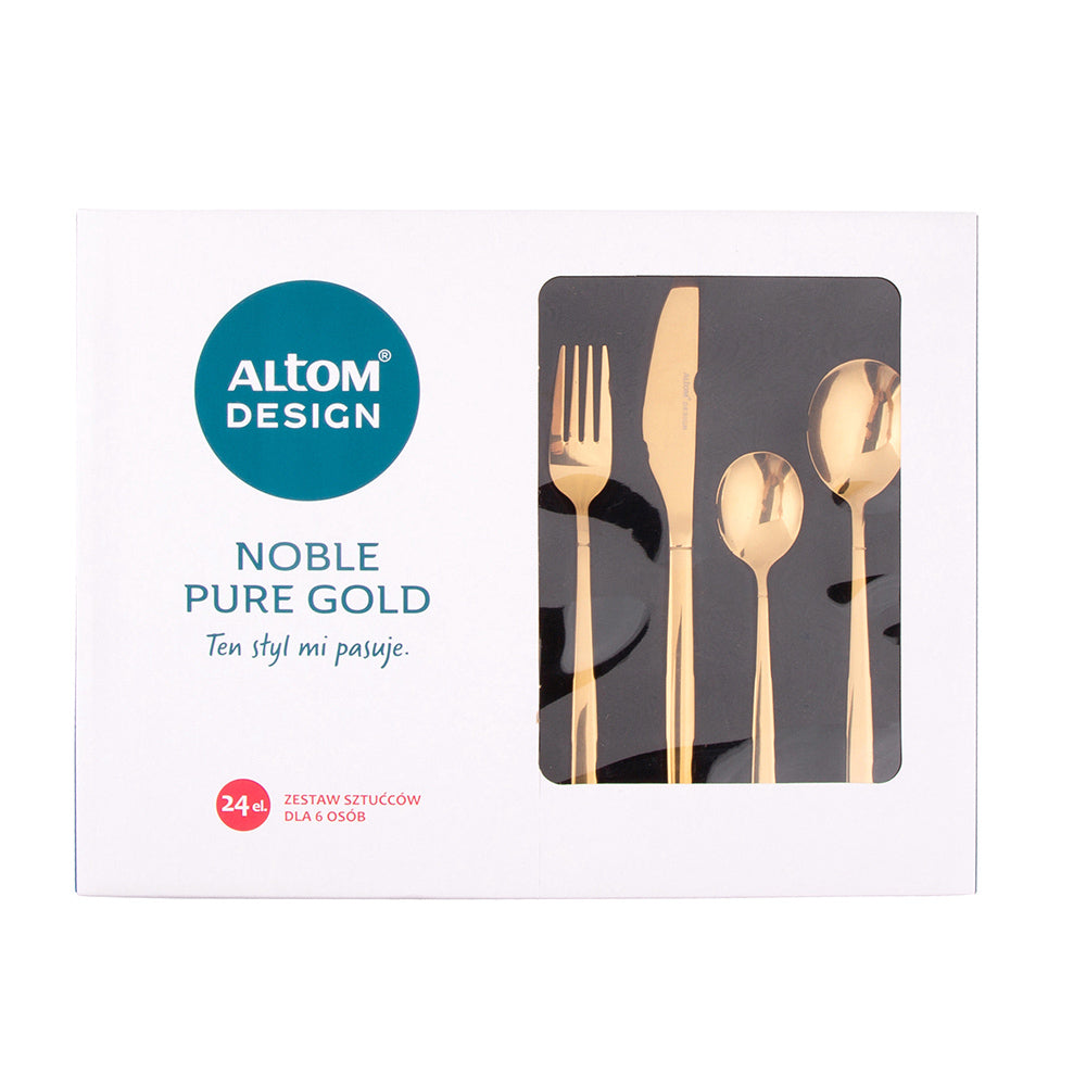 Altom Design heeft de perfecte luxe bestekset voor jou samengesteld: de Noble Pure Gold set. Met zijn gouden tint voegt dit tafelbestek een vleugje glamour toe aan zowel klassieke als moderne interieurs.