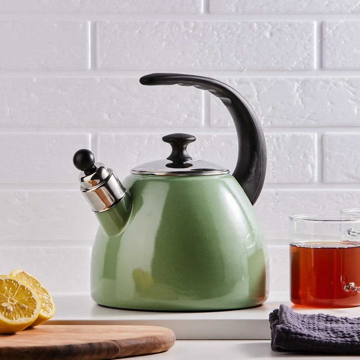 Hoogwaardige emaille fluitketel van Altom Design: Ontvang de perfecte combinatie van retro en modern design met de Altom Design Balbina waterketel in groen.