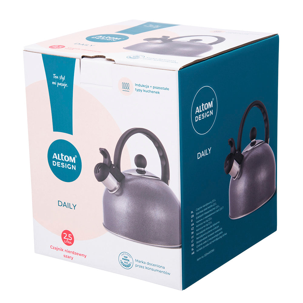 Altom Design Daily fluitketel RVS hoogglans grijs met glinstering 2.5 Liter - ook geschikt voor inductie