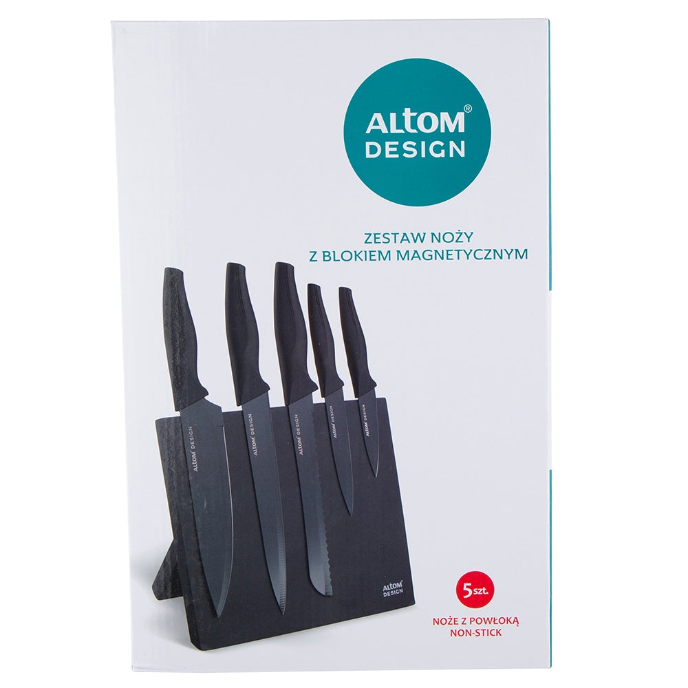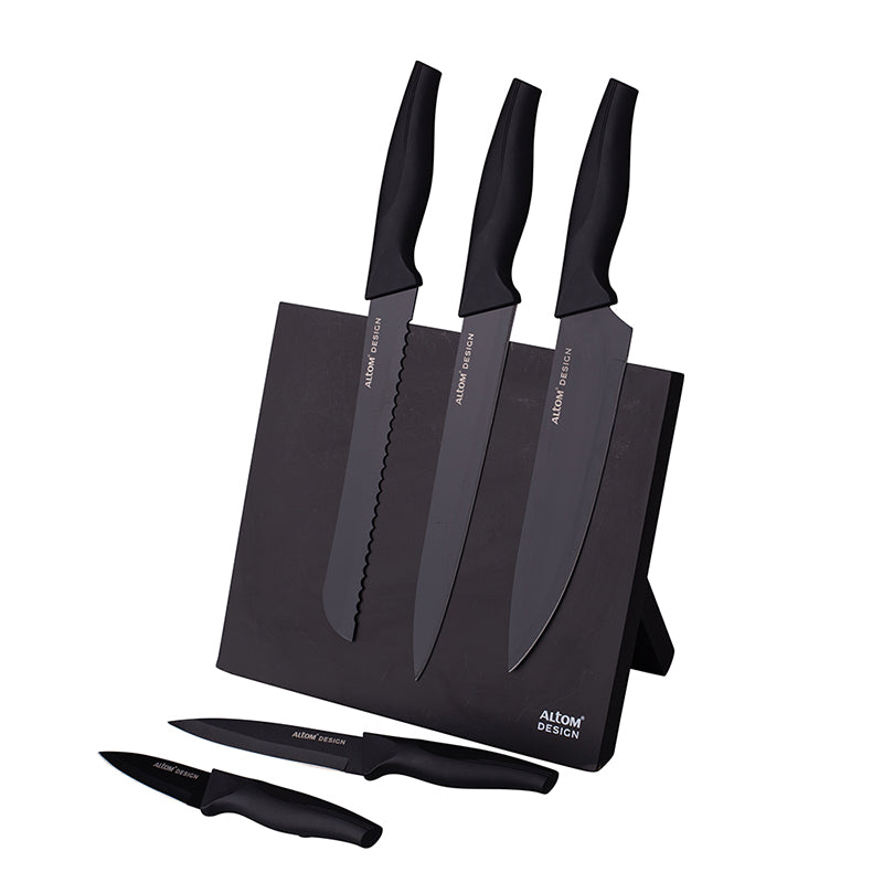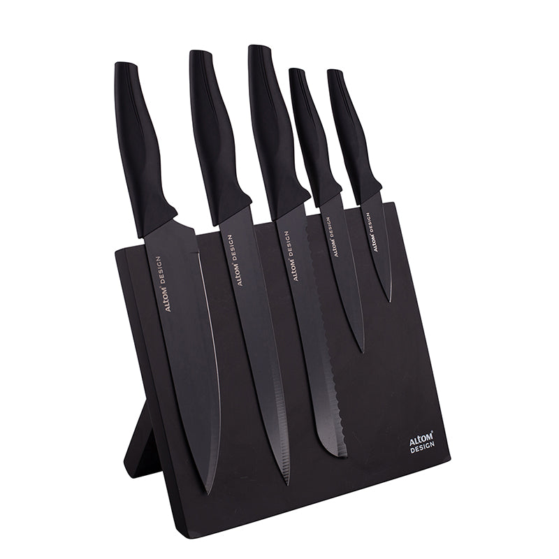 Altom Design zwart magnetische messenblok met 5 zwarte messen