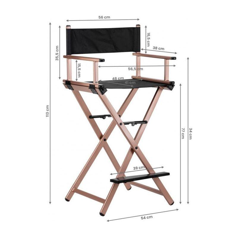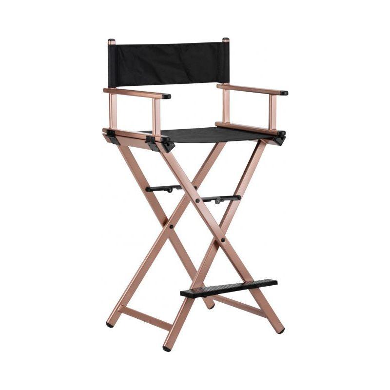 Ben je op zoek naar een professionele make-up stoel die perfect is voor onderweg? Dan is deze Aluminium Visagie en Make-up Stoel in Rosé Goud met Voetensteun de ideale keuze voor jou! Stabiel, lichtgewicht en gemakkelijk schoon te maken, deze regisseursstoel is perfect voor mobiele visagisten en past moeiteloos in elke creatieve ruimte. Maak je klaar om professionele resultaten te behalen, waar je ook bent!