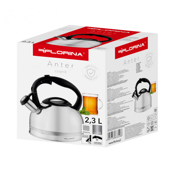 Florina Anter fluitketel gepolijst RVS zilver 2.3 Liter - ook geschikt voor inductie