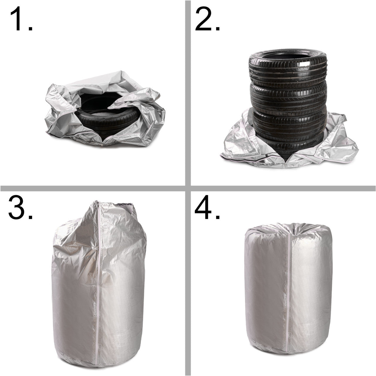 Waterdichte autobandhoes voor 4 banden beschermt goed tegen vocht, stof en UV-straling.