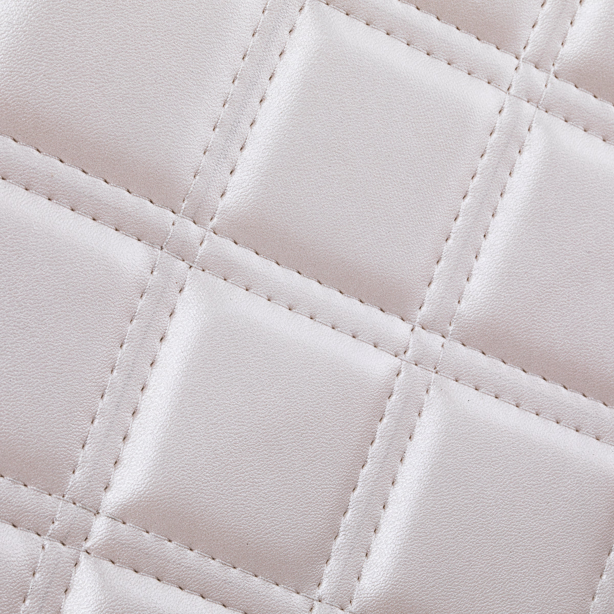 Synthetisch leder in pearl-kleur dat slijtvast, hygiënisch en eenvoudig te reinigen is.