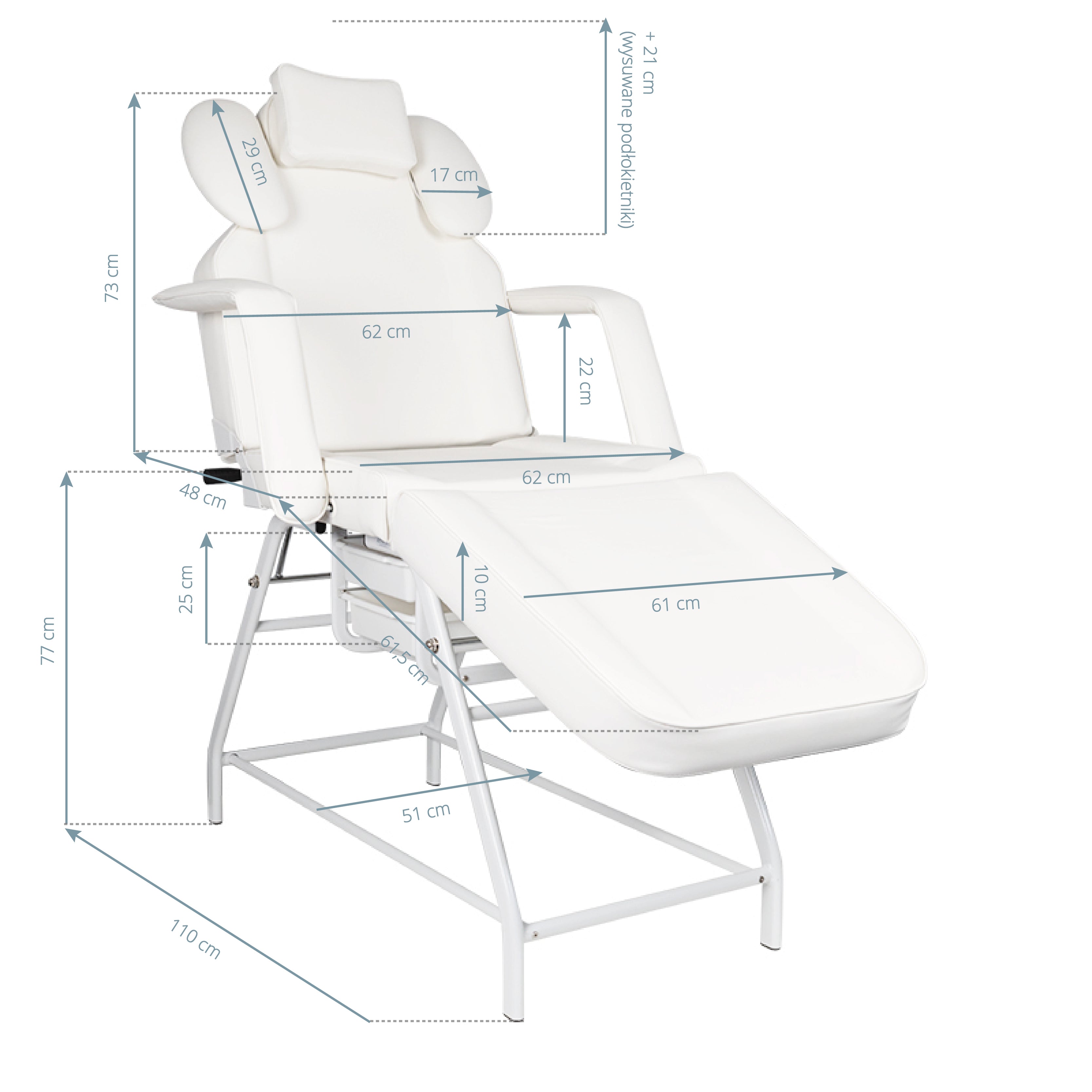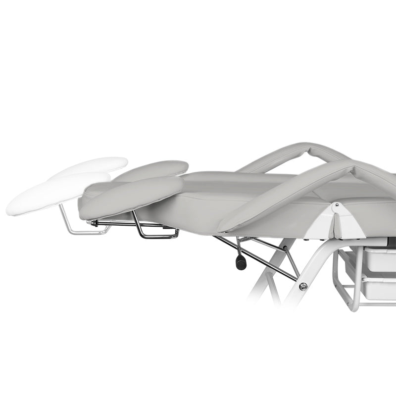Het elegante grijze design en de functionele afwerking maken deze stoel ideaal voor zowel professionele schoonheidssalons als thuissalons. De afneembare armleuningen met geïntegreerde opbergvakken bieden extra gebruiksgemak en efficiëntie tijdens behandelingen.