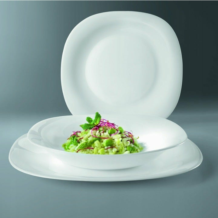 Met de Bormioli Rocco Parma serviesset 18-delig haal je de perfecte mix van stijl, kwaliteit en gebruiksgemak in huis. Het servies is gemaakt van getemperd opaalglas, tot wel twintig keer sterker dan porselein en ideaal voor dagelijks gebruik én speciale gelegenheden. Dankzij de combinatie van ronde en vierkante vormen oogt de set modern en elegant, terwijl het stevige glas jarenlang mooi blijft.