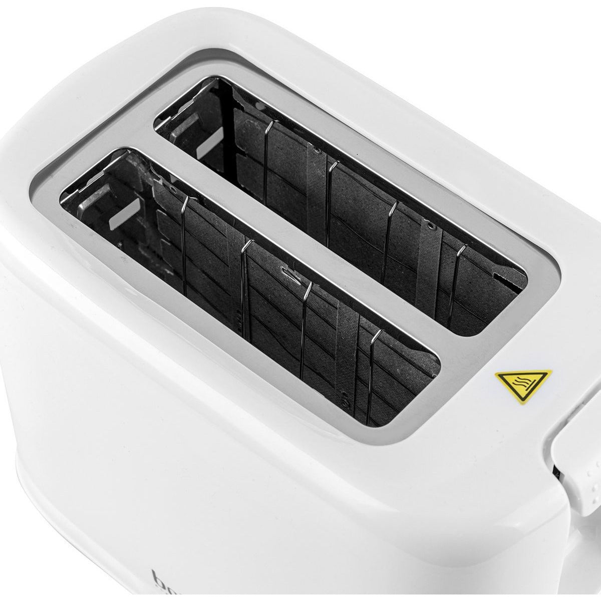 Het strakke, witte kunststof design geeft deze broodrooster een moderne uitstraling die in elke keuken past. De buitenkant blijft koel tijdens het gebruik dankzij de niet-verwarmende behuizing, wat extra veiligheid biedt. Met de handige automatische uitwerpfunctie haal je het brood gemakkelijk uit de toaster zonder je handen te branden. De verwijderbare kruimellade maakt schoonmaken simpel en snel, zodat je altijd kunt genieten van een schone en hygiënische broodrooster.
