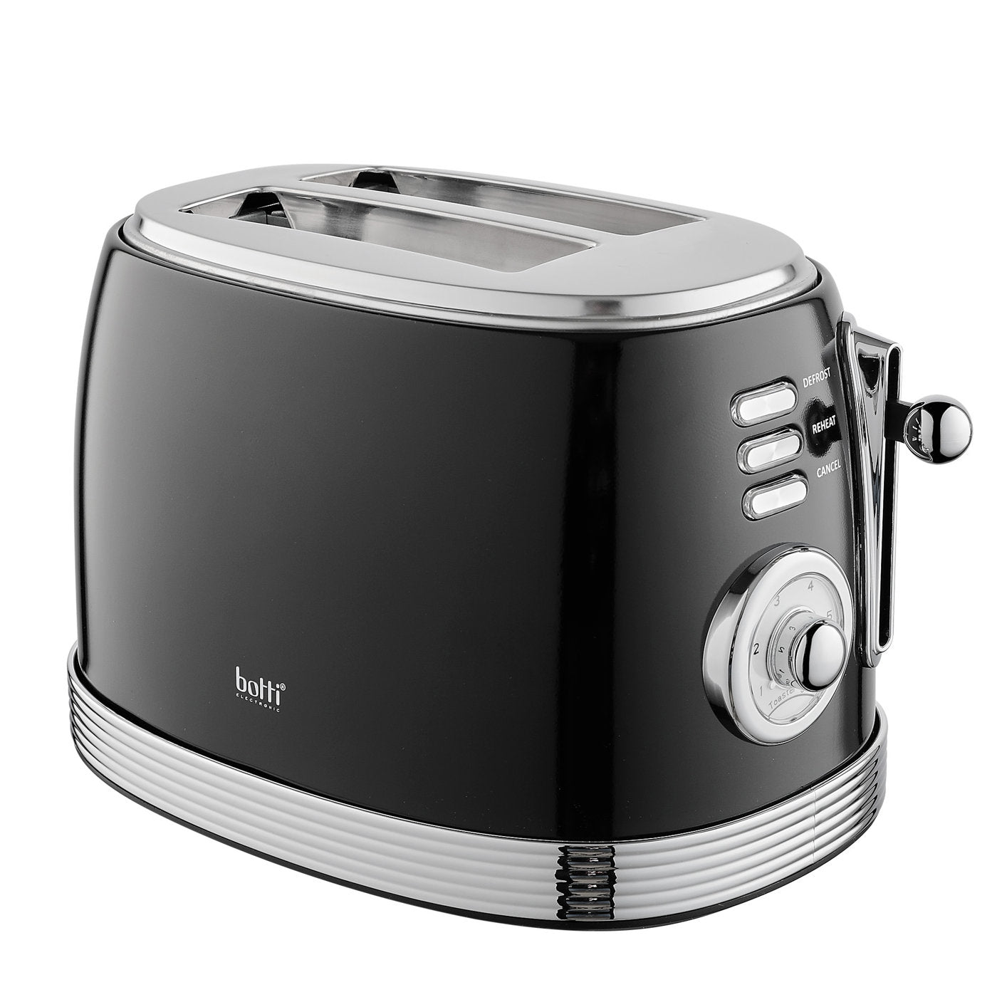 Wil je elke dag genieten van perfect geroosterd brood precies zoals jij het lekker vindt? De Botti Royal Line broodrooster 850W combineert 3 functies in één: toasten, verwarmen én ontdooien. Met de 6 instelbare bruiningsstanden bepaal je zelf de kleur en krokantheid van je toast. Dankzij het klassieke zwarte RVS design is deze toaster niet alleen praktisch, maar ook een stijlvolle toevoeging aan je keuken.
