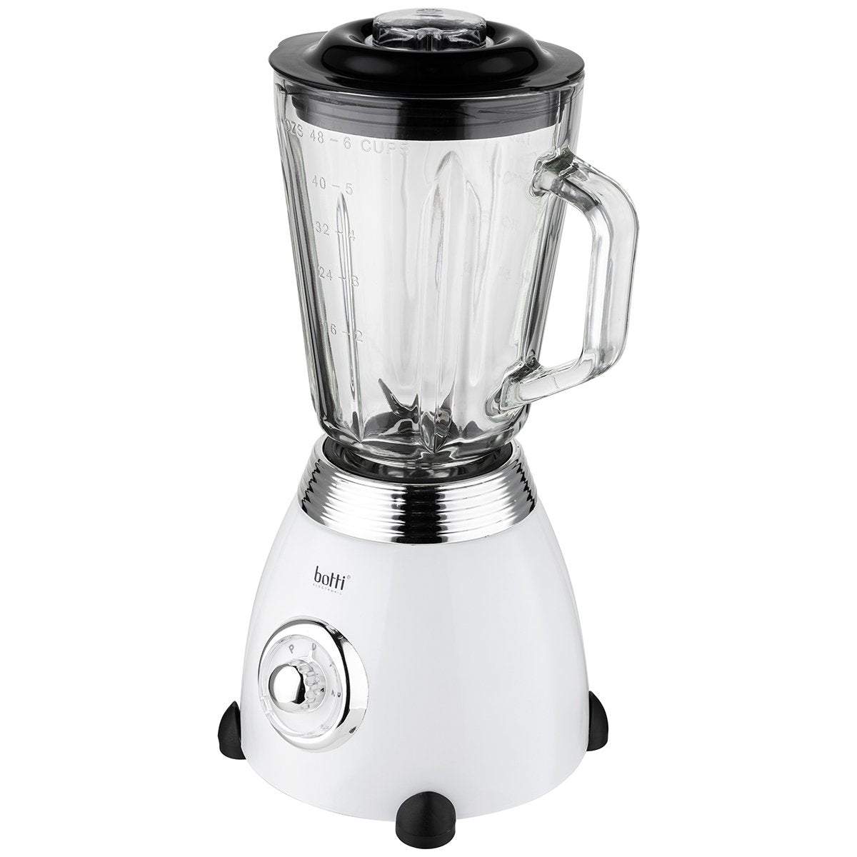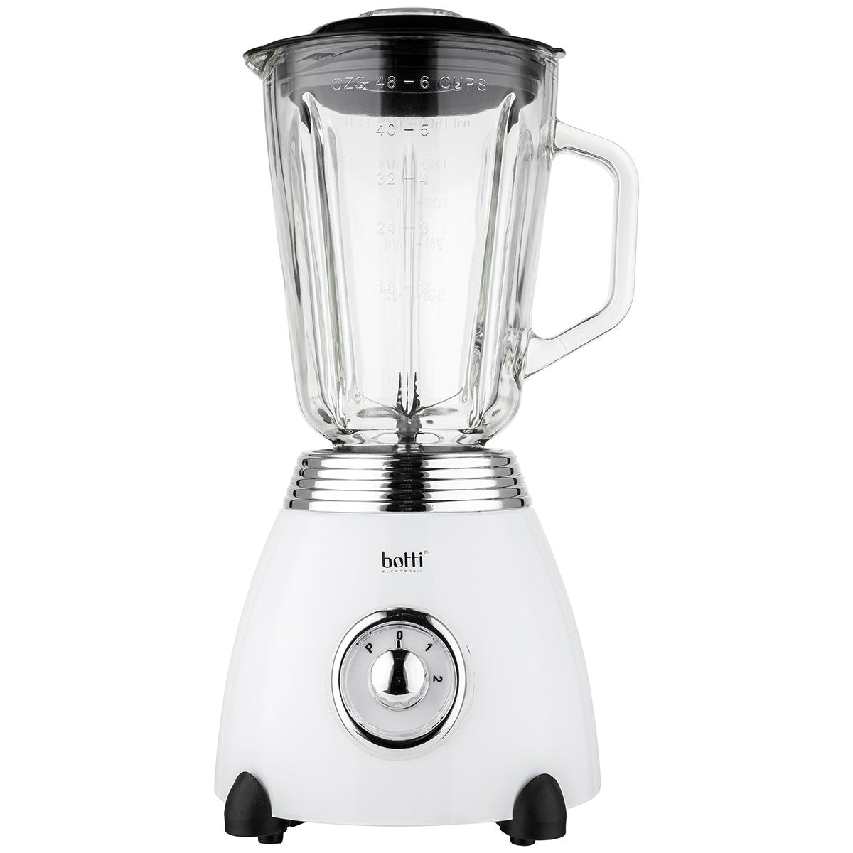 Wil je thuis genieten van gezonde smoothies, romige soepen of verse sauzen? De Botti Royal Line blender 500W combineert kracht en elegantie in één apparaat. Dankzij de 2 snelheden en pulsfunctie maal je zowel zachte vruchten als harde ingrediënten zoals noten of ijsblokjes moeiteloos fijn. Met een ruime glazen kan van 1,5 liter en een stijlvol retro wit/zilver design is dit apparaat niet alleen praktisch, maar ook een eyecatcher in je keuken.