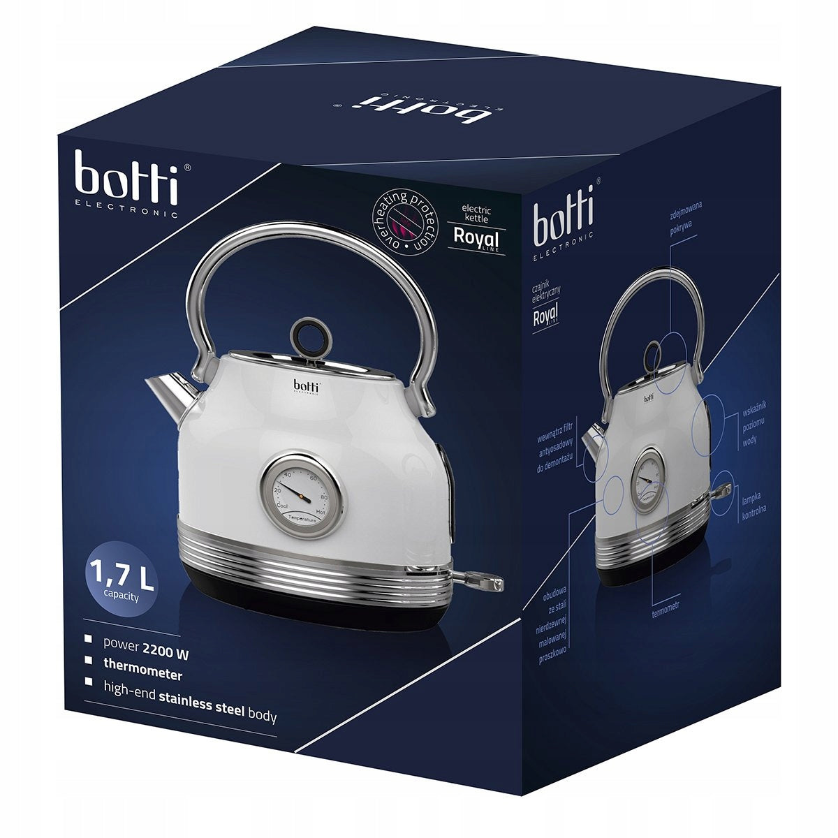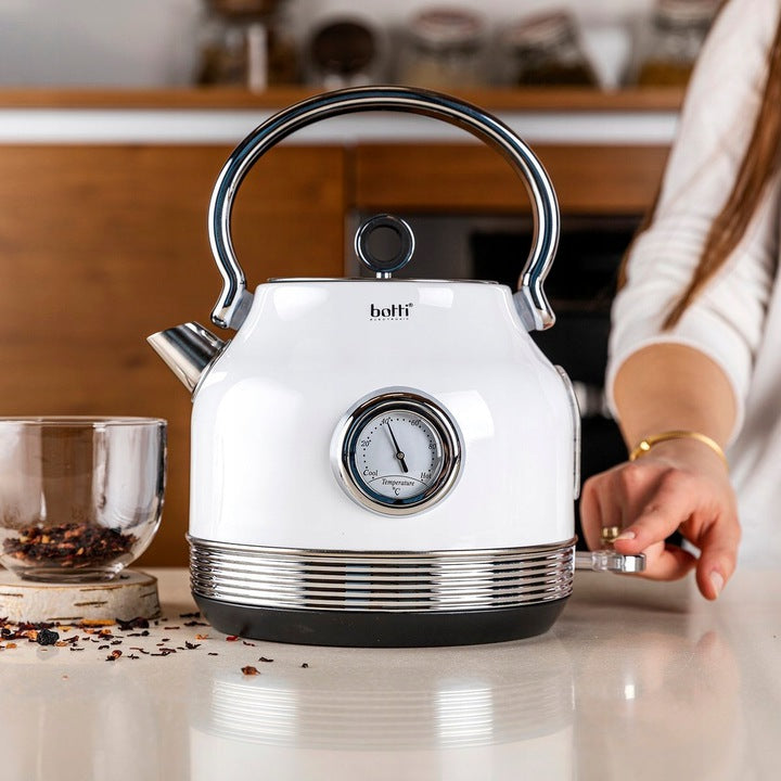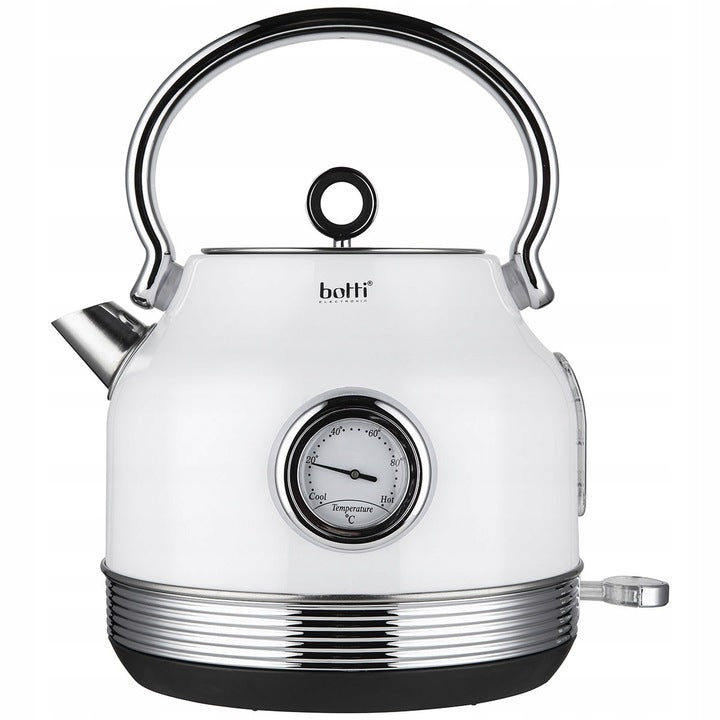 Botti Royal Line professionele waterkoker met thermometer klassiek design 1.7L 2200W wit/zilver