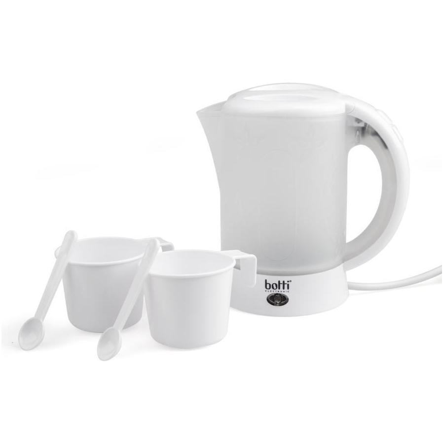 Zoek je een compacte reis waterkoker waarmee je overal snel en veilig water kunt koken? De Botti Teo camping waterkoker 0,6 L combineert een 650 W motorvermogen met een lichtgewicht en transparant design. Ideaal voor op de camping, in je hotelkamer, tijdens zakenreizen of in de caravan. Deze mini waterkoker is veilig, praktisch en wordt geleverd met 2 bekers en 2 lepeltjes – direct klaar om onderweg te genieten van thee, koffie of soep.