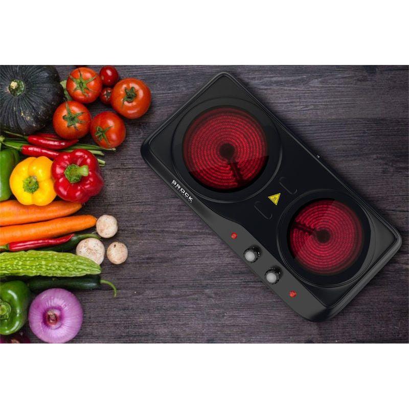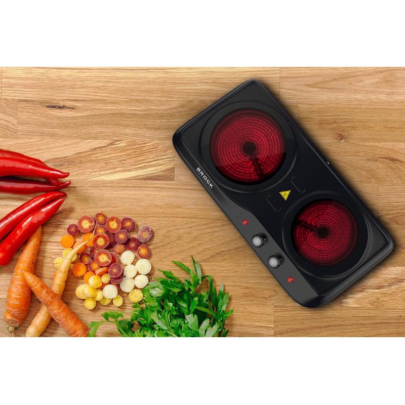 Of je nu weinig ruimte hebt, vaak onderweg bent, of gewoon op zoek bent naar een extra kookplaat: de BROCK infrarood 2-pits kookplaat biedt jou maximale flexibiliteit, krachtige prestaties en een stijlvol design.