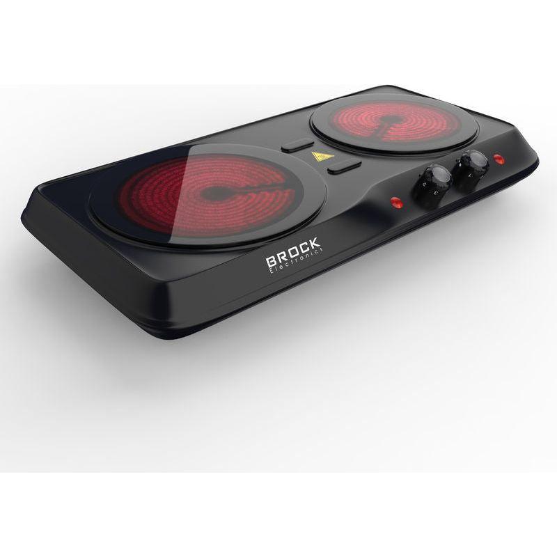 BROCK 2-Pits Infrarood Elektrische Kookplaat – 1200 + 800W – Glazen Platen – Compact & Krachtig – Zwart