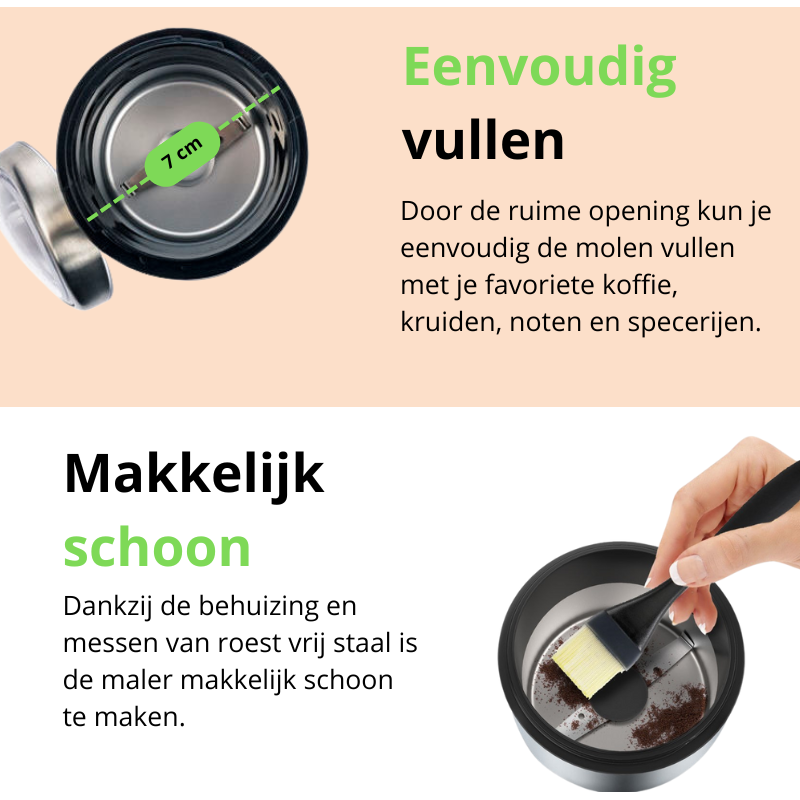 Multifunctioneel gebruik – geschikt voor koffiebonen, specerijen, noten en kruiden