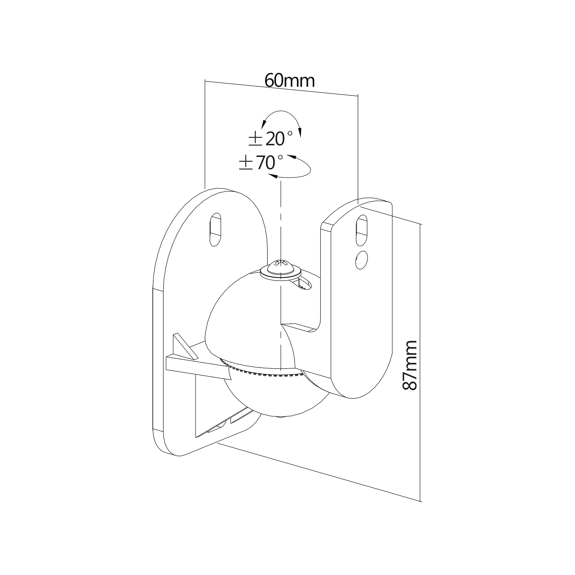 - Met een verticale aanpassing van +20° ~ -20° en een horizontale aanpassing van +70° ~ -70° kun je de luidsprekers perfect afstellen.