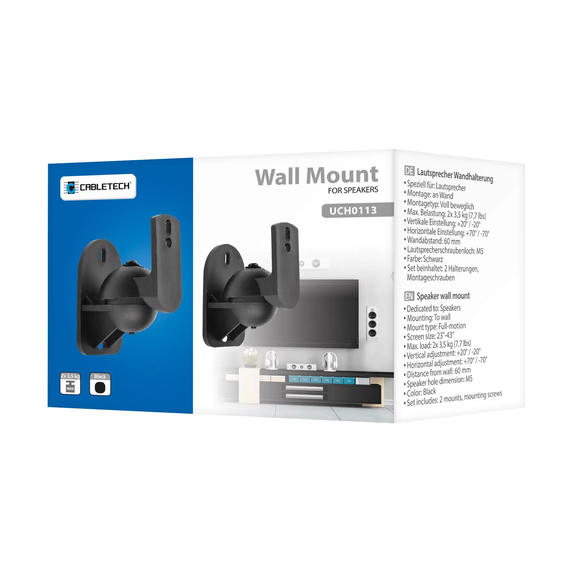 - Met een maximaal belastbaar gewicht van 3.5 kg zijn deze muurbeugels geschikt voor veel verschillende luidsprekers.