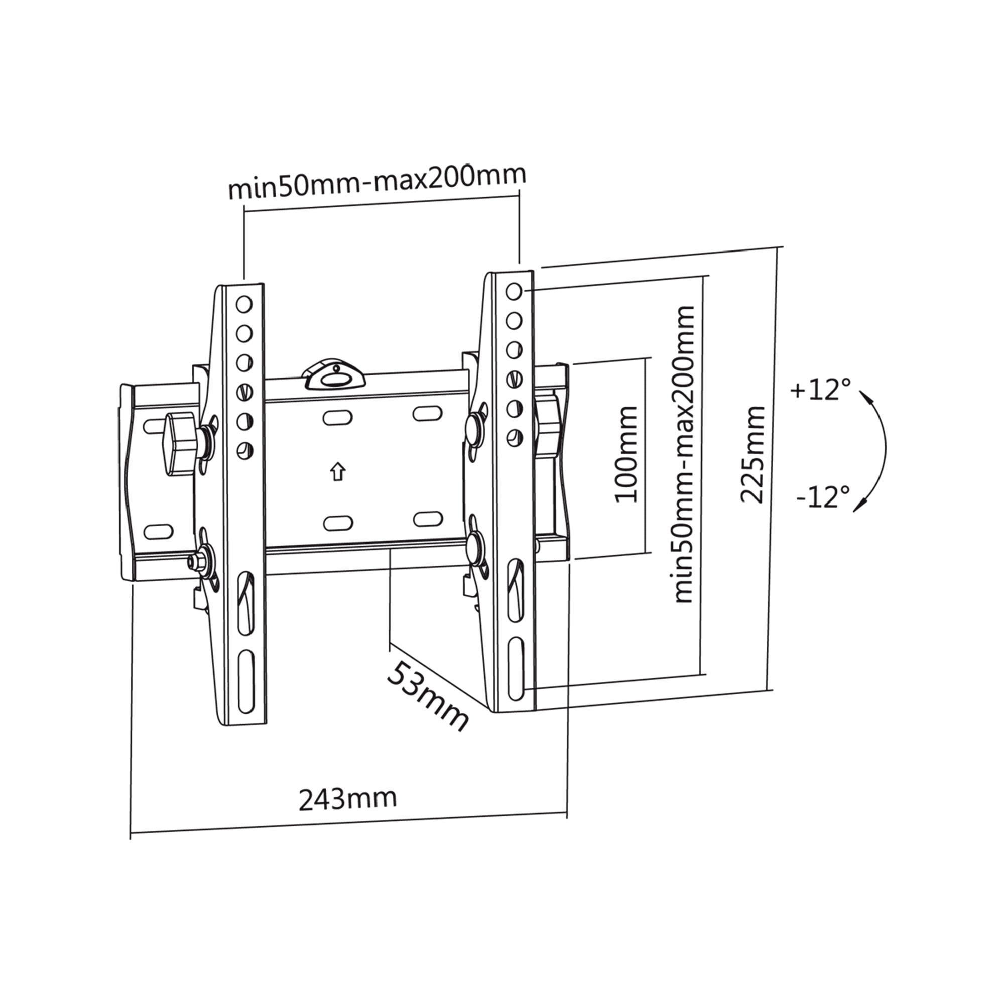 Ja, deze muurbeugel heeft een verticale aanpassing van +12° tot -12°, zodat je de schermpositie nauwkeurig kunt instellen voor het beste zicht in de kamer.
