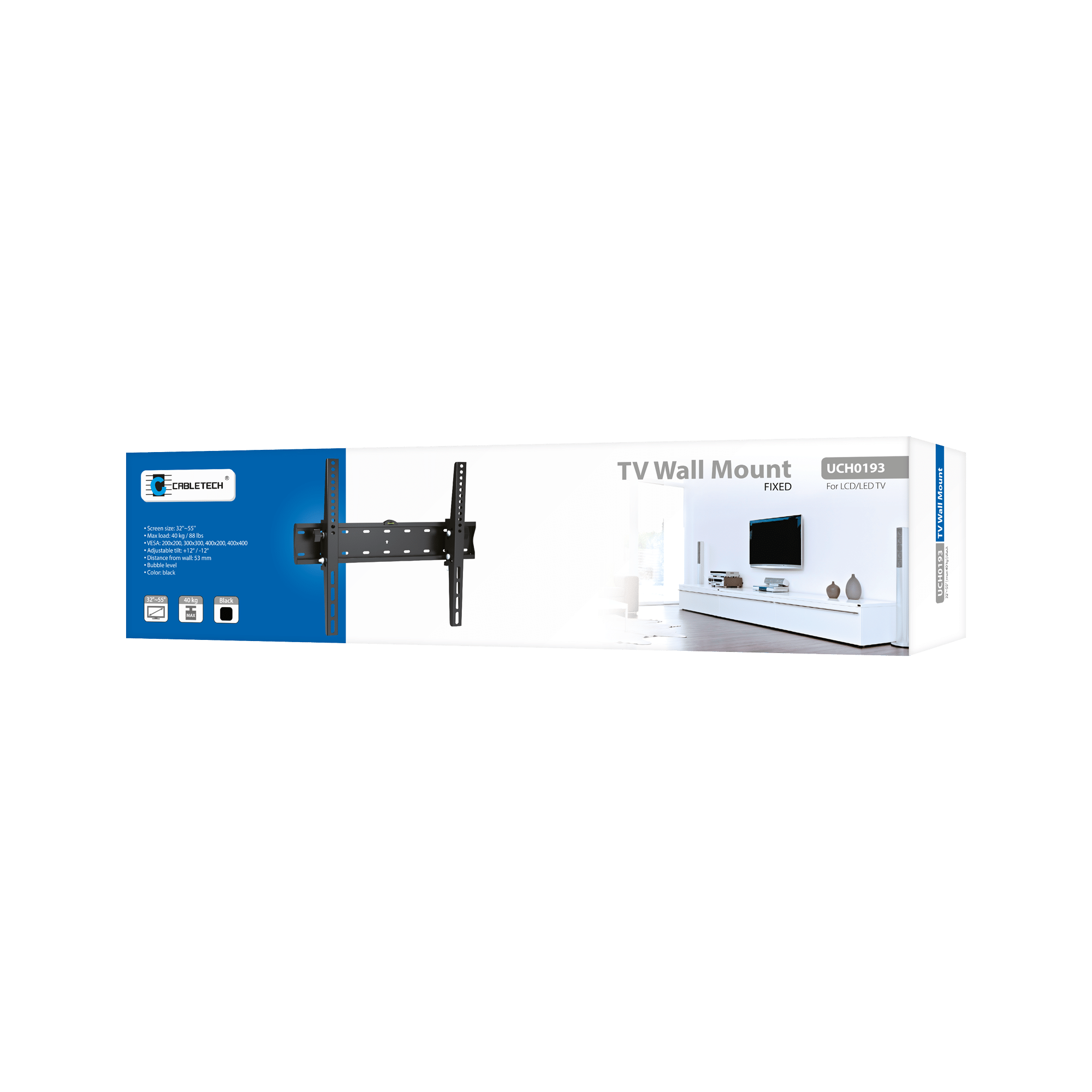 - Geschikt voor LED of LVD TV's van 32 tot 55 inch en een maximaal gewicht van 40 kg.
