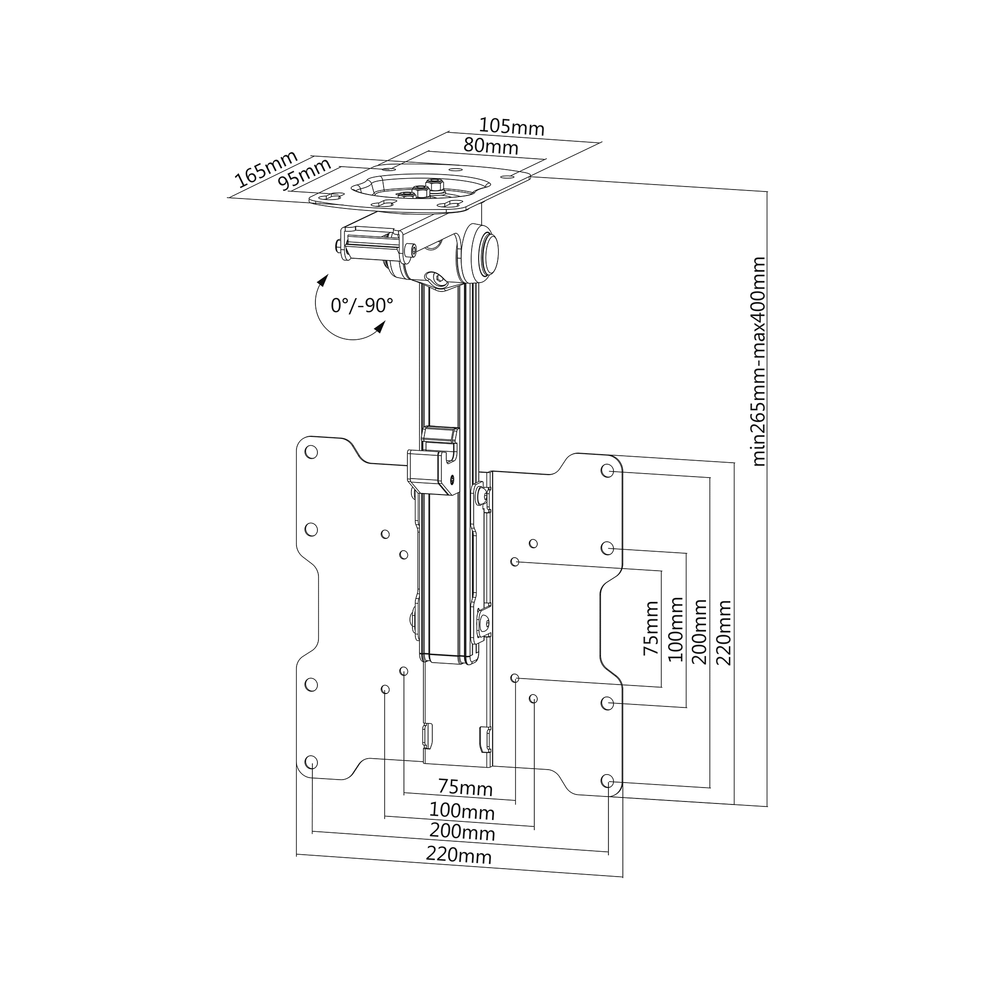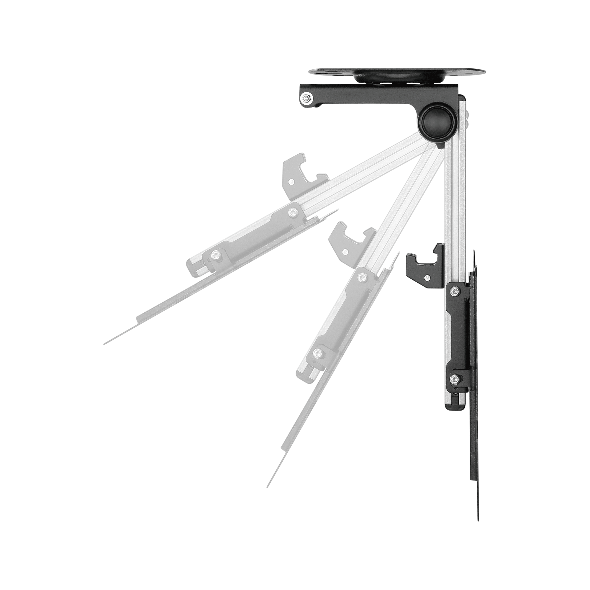 Wil je je tv zo ophangen dat optimaal gebruik en comfort gegarandeerd is? De universele plafond-/schuine beugel voor led-tv's van 17" tot 37" biedt de flexibiliteit om zowel aan het plafond als onder een hoek te monteren. Het kantelmechanisme maakt verticale aanpassing mogelijk van 0° tot -90° en horizontaal in het bereik van +45° tot -45°, waardoor een nauwkeurige aanpassing van de kijkhoek mogelijk is. Hierdoor krijg je, ongeacht waar je kijkt, een perfect beeld en comfort tijdens het gebruik.