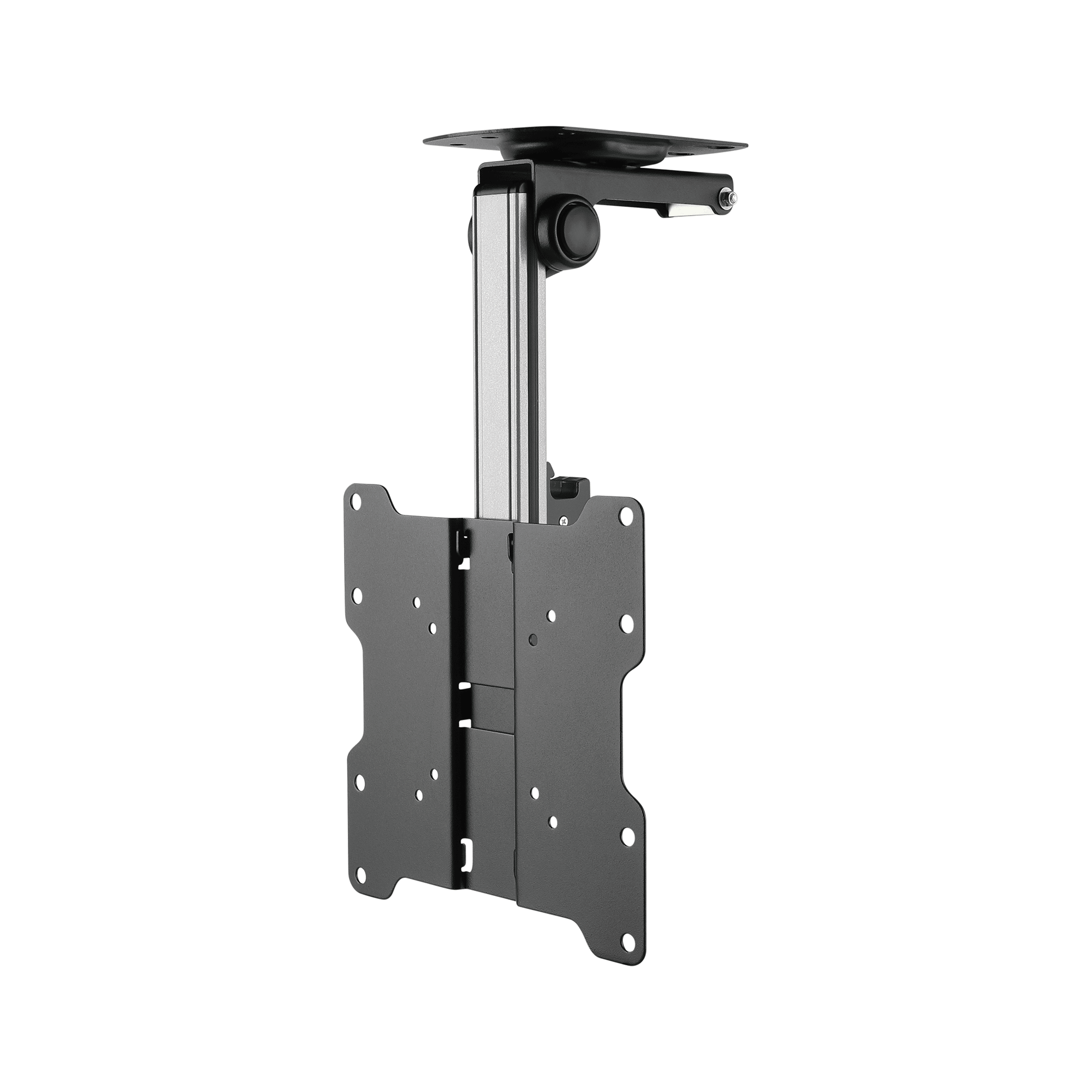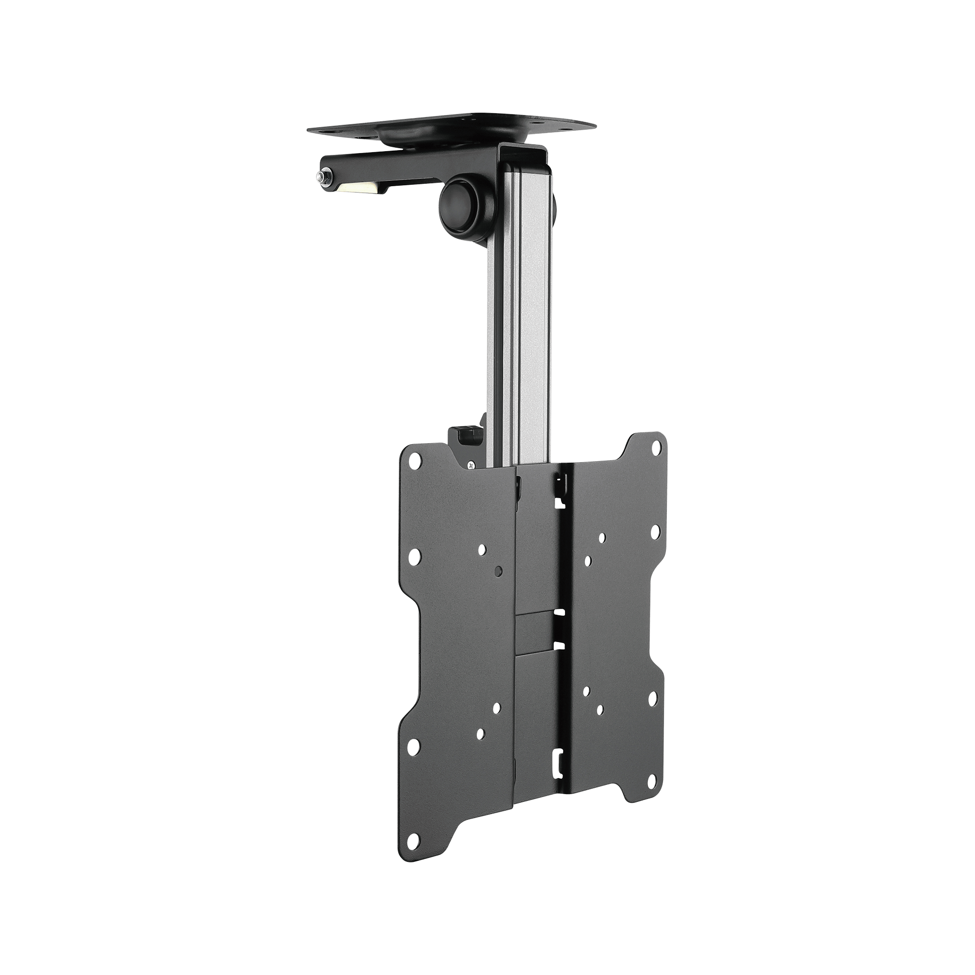 De universele plafondbeugel is geschikt voor LCD en LED TV's van 17" tot 37" inch en kan tot 20 kg dragen. Met een kantelbaar ontwerp en horizontale aanpassing van +45° tot -45°, kun je de ideale kijkhoek bereiken voor een geweldige kijkervaring. De beugel is gemaakt van gepoedercoat staal in een elegante zwarte kleur en past perfect in elk interieur.