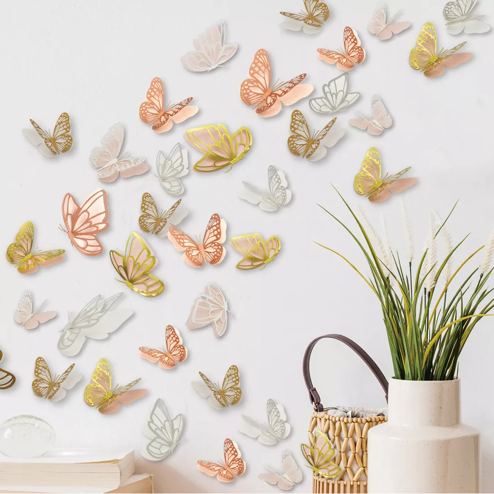 Cake topper 3D decoratie vlinders of muur decoratie met plakkers 20 stuks Brons/Wit - 3D vlinders - VL-05