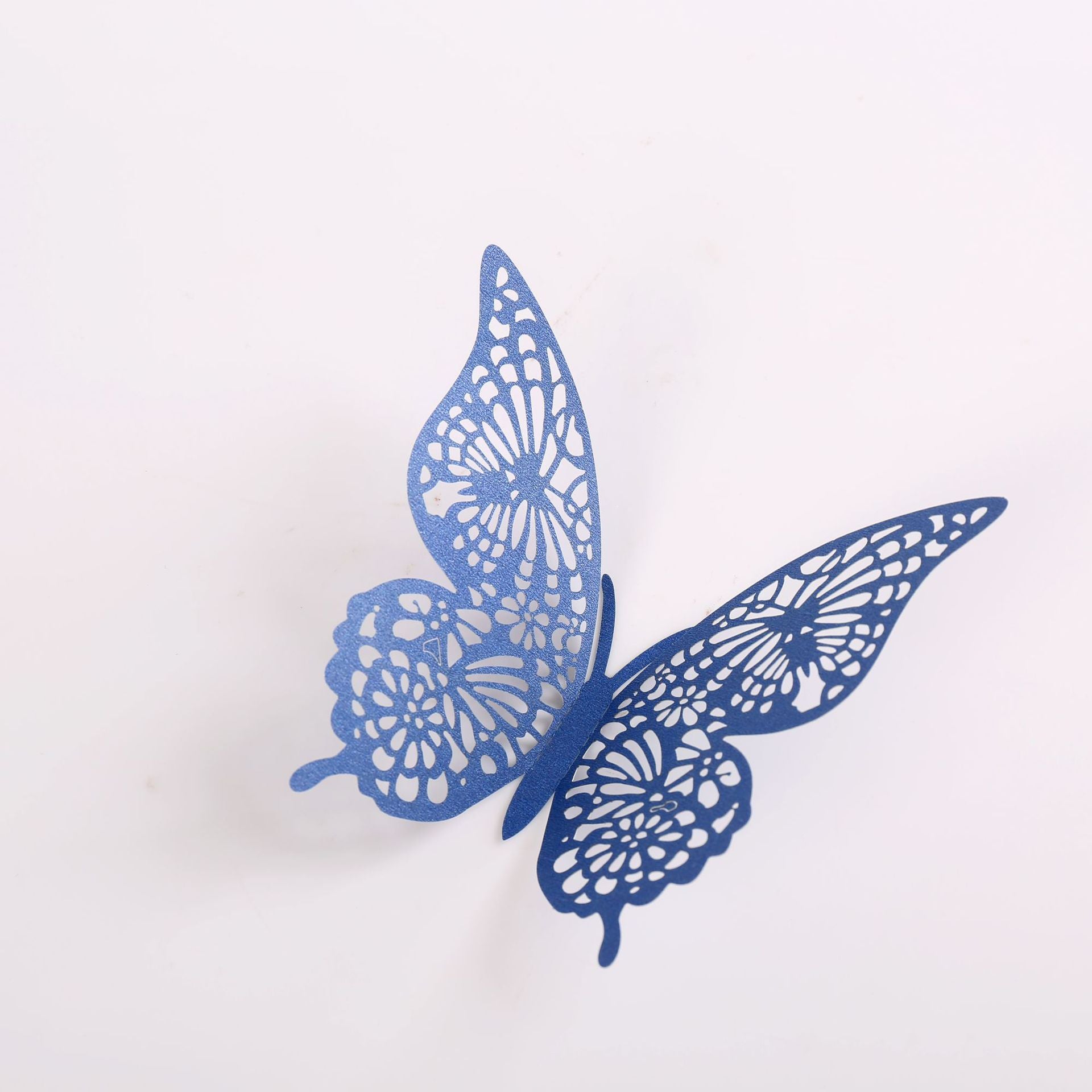 Cake topper decoratie vlinders - muur decoratie met plakkers 12 stuks blauw VL-02
