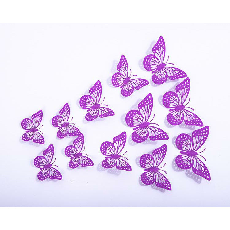 Cake topper decoratie vlinders - muur decoratie met plakkers 12 stuks paars VL-01
