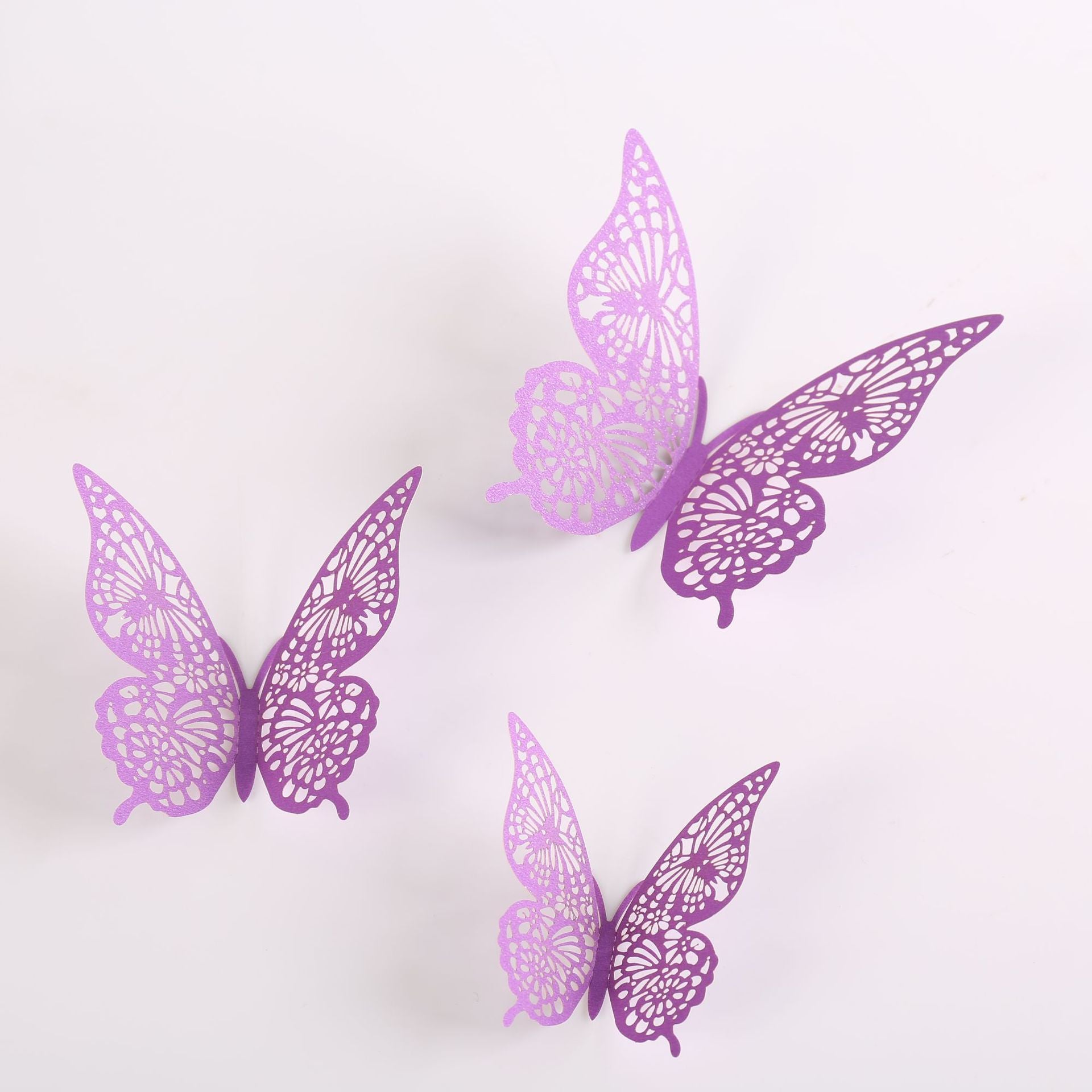 Cake topper decoratie vlinders - muur decoratie met plakkers 12 stuks paars VL-02