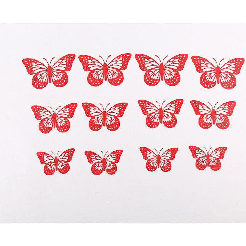 Cake topper decoratie vlinders - muur decoratie met plakkers 12 stuks rood VL-01