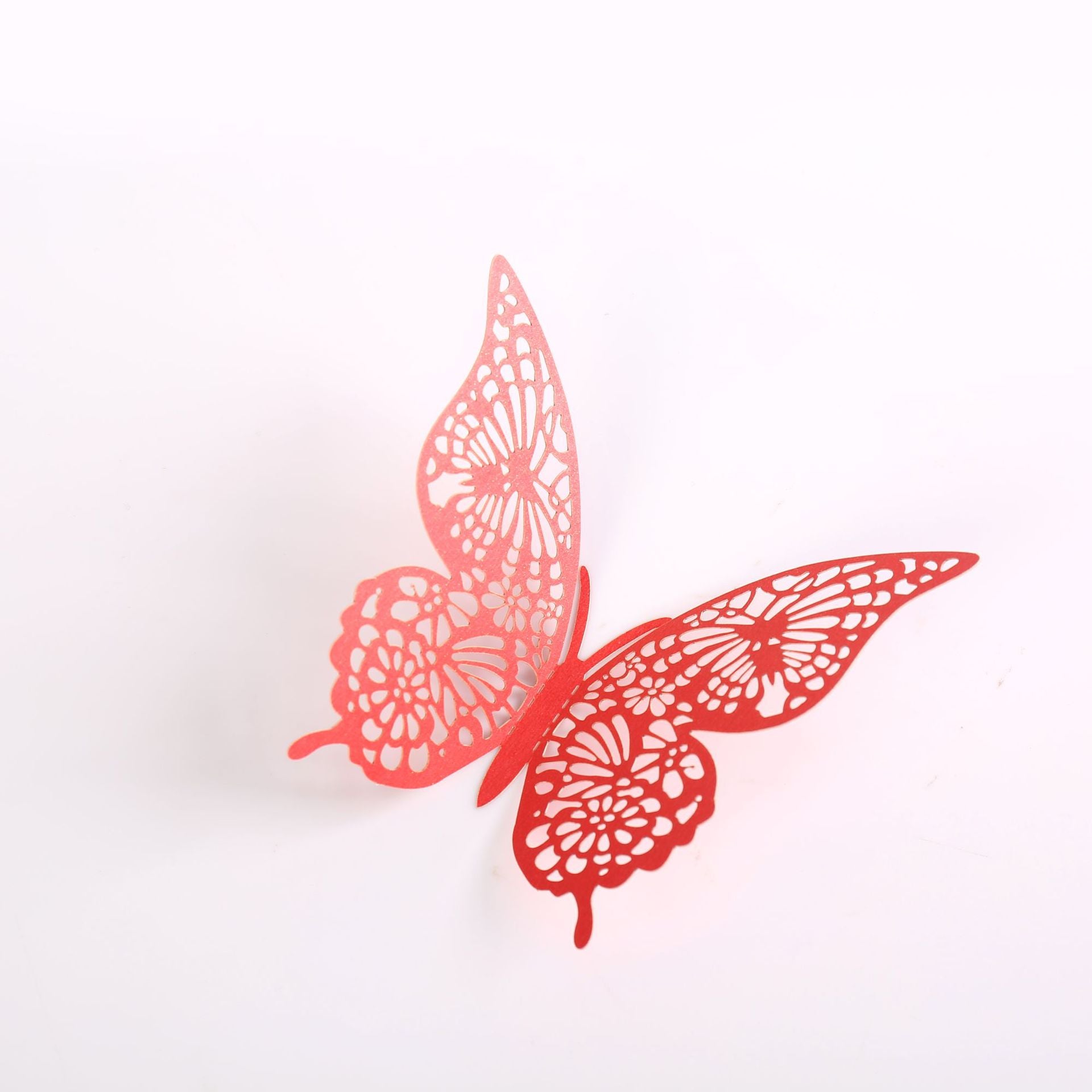 Cake topper decoratie vlinders - muur decoratie met plakkers 12 stuks rood VL-02