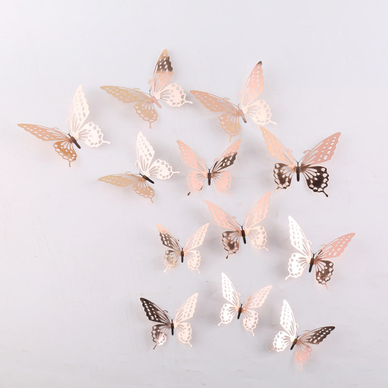 Cake topper decoratie vlinders - muur decoratie met plakkers 12 stuks rosé VL-04