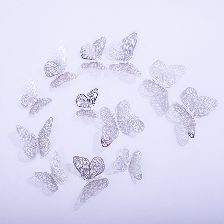 Cake topper decoratie vlinders - muur decoratie met plakkers 12 stuks zilver VL-03