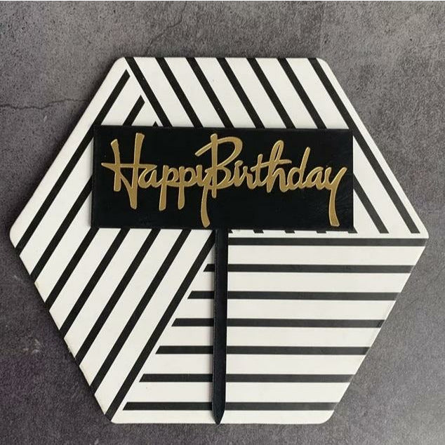 Cake topper taartversiering ''Happy birthday'' rechthoekig goud/zwart