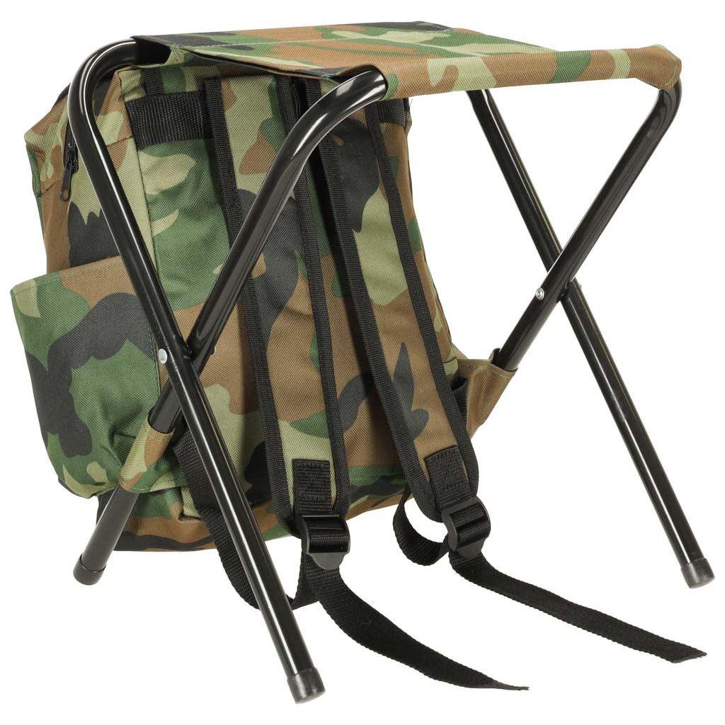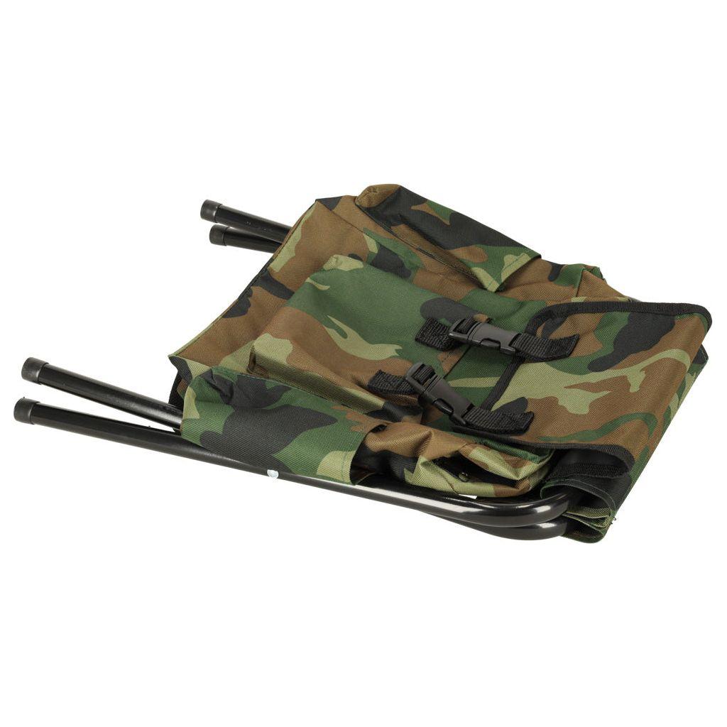 Met de Grote Camouflageprint Reisvisstoel met Rugzak hoef je nooit meer op te staan om je spullen te pakken.