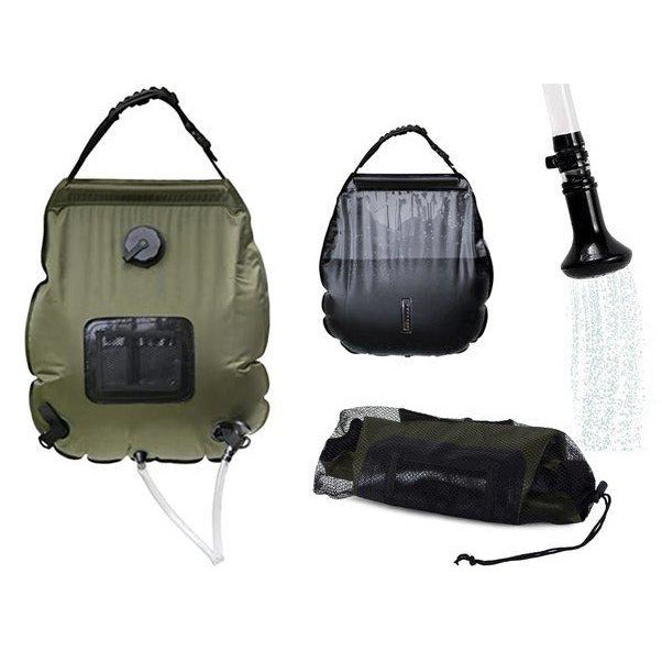 Camping douche waterzak met temperatuurmeter legergroen 20L